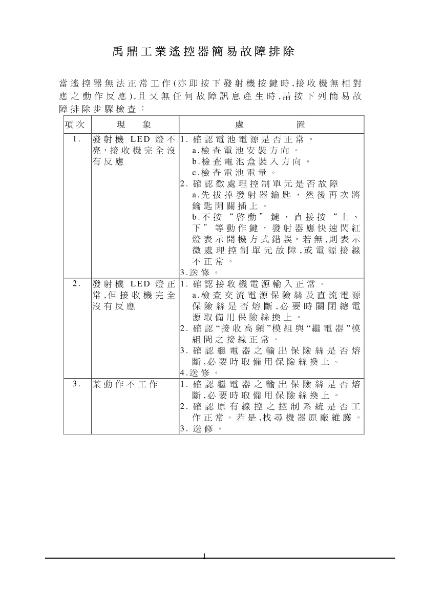 禹鼎遙控器簡易故障排除
